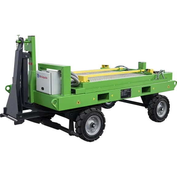 Air Liquide's Cart for Liquid Tank is designed to convert the premixed liquid to a homogeneous non-SF6 gas mixture contained in large 530 L tanks. The cart for liquid tank reduces operator time using fully automated processes to a large volume of product. Automation adds consistency while the large volume reduces the cylinder handling by a factor of 8, resulting in improved quality, efficiency and safety. Air Liquide’s proven induction heating process provides unmatched vaporization at relatively low temperatures. Only induction heating uses the tank as the heater. This provides watt densities which allow higher flow rate and improved productivity.