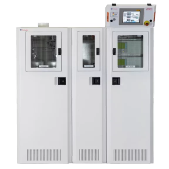 Our gas cabinets range from fully manual with a single panel to those with fully automatic purge sequences for cylinder change-out, and automated switching between redundant panels. The latter equipment is capable of delivering an uninterrupted supply of process gas. We also offer an advanced, patented solution to distribute the highest possible flows of low vapor pressure liquefied gases.